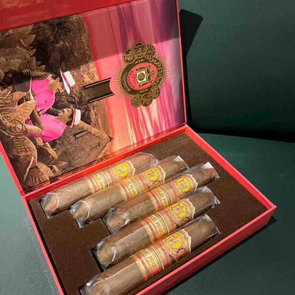 Arturo Fuente Rare Pink Vintage 1960's Series is one of the newest Hemingway blends of shaped Perfecto cigars with Ecuadorian wrappers. It is a powerful, full-bodied super-premium with smooth 100% Fuente estate-grown tobaccos from Nicaragua and the Dominican Republic. This new take on the Hemingway Perfectos is handcrafted in the Dominican Republic at the renowned Tabacalera Fuente. Created by the only Toymaker, Carlito Fuente, and inspired by his daughter, Liana Fuente, this exceptional cigar undeniably captures the strength and spirit of the next generation of Fuente. Be ready and on the lookout cause The Pinks are Coming! You are going to want to add these Rare Pink cigars to your humidor collection!